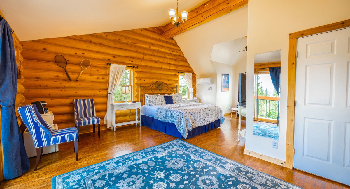 Award-Winning Luxury Log Lodge, 8,000+ sq. ft. on 5 hilltop acres in Murphys, located between Lake Tahoe and Yosemite National Park. Built by Bay Area tennis pros with Western Red Cedar logs from Oregon, this meticulously maintained property is a 5-star-rated luxury retreat, perfect as a private estate, vacation rental, duplex, or boutique inn. Features include all suites with ensuite bathrooms, professional kitchen, 23' Great Room with 10' stone fireplace and wet bar, loft/library, game room, office/den, XL laundry room, massage parlor, PLUS a private apartment with a second kitchen, living/dining space, office, bathroom, and separate entry. Two regulation size tennis courts, dual EV charging stations, Tesla Powerwalls, quadruple water filtration system, 2 central A/C and heat pumps, 8 mini-splits, and whole-house Generac generator (2023). Thoughtfully landscaped with drought resistant plants, and the water is sourced from on-site well for the fruit trees, herbs, edible plants and organic vegetable gardens, and is filtered for personal use. Come experience this one-of-a-kind architectural beauty with sweeping 360 views, and imagine the endless possibilities of this exceptional property.