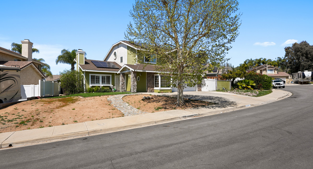 Welcome to this charming 5 bedroom, 3 bath, 2,436 square feet home situated on a 7,405 square foot lot in a quiet cul-de-sac. As you enter you are greeted with an open floor plan with vaulted ceilings, plantation shutters, fireplace, and a lot of natural light throughout. Upgraded kitchen with granite counters, backsplash and abundance of cabinet space. Main floor bedroom with shower. Upstairs primary ensuite with dual closets and deck overlooking private backyard. 3 additional bedrooms upstairs. Main bath with dual sinks. Other updates and features include 28 Solar Panels owned and paid off, newer roof, HVAC, vinyl plank flooring, carpet, and closed security camera system. Backyard is tranquil with gazebo, water feature, extra storage with potential RV parking. Conveniently located near shopping, dining, and entertainment, wine country outlets, lakes, and minutes to the 15 freeway.